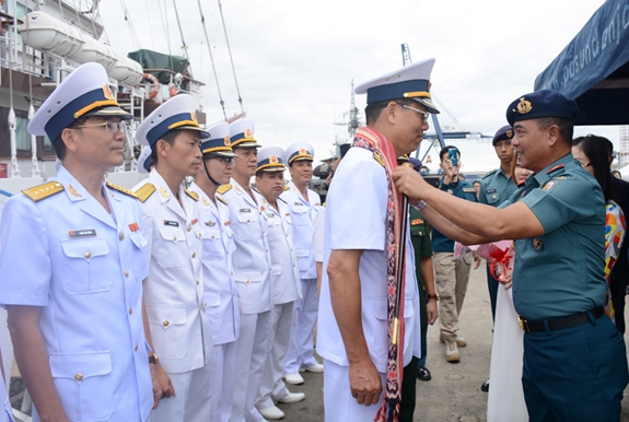 Thay mặt Hải quân Indonesia, ngài Đề đốc Denih Hendrata, Chỉ huy trưởng Căn cứ số 3, Hạm đội 1 (Hải quân Indonesia) đã tặng hoa Đại tá Nguyễn Đức Nam, Phó giám đốc Học viện Hải quân Việt Nam, Trưởng đoàn; chúc đoàn có chuyến công tác thành công và có những trải nghiệm thú vị tại đất nước Indonesia tươi đẹp và giàu lòng mến khách.