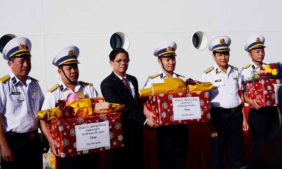 Chiều 10-1, tại TP Cam Ranh, tỉnh Khánh Hòa, Bộ tư lệnh Vùng 4 Hải quân phối hợp với UBND tỉnh Khánh Hòa tổ chức Lễ tiễn đoàn công tác đi thăm, chúc Tết quân và dân huyện đảo Trường Sa, tỉnh Khánh Hòa.