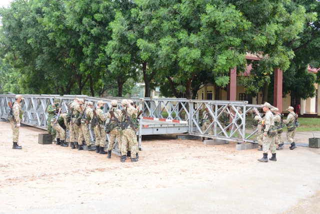 Phân đội Công binh công trình 1 huấn luyện thi công cầu Beilay.