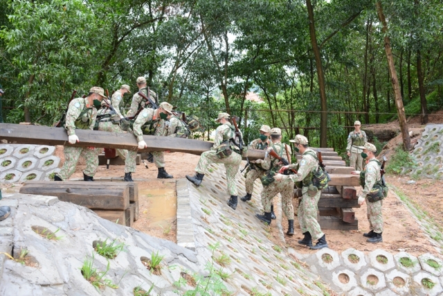 Phân đội Công binh công trình 2 huấn luyện thi công cầu gỗ.