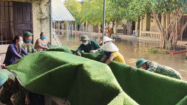 Sáng 28-9, Ban CHQS huyện Quỳnh Lưu (Nghệ An) đã huy động 250 cán bộ, chiến sĩ, dân quân tự vệ giúp nhân dân trên địa bàn khắc phục hậu quả mưa lũ.