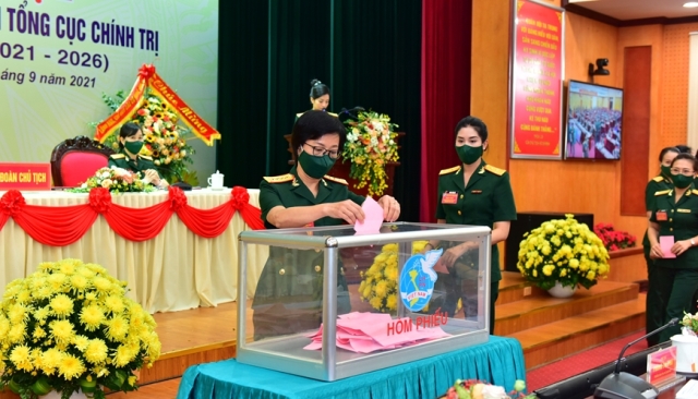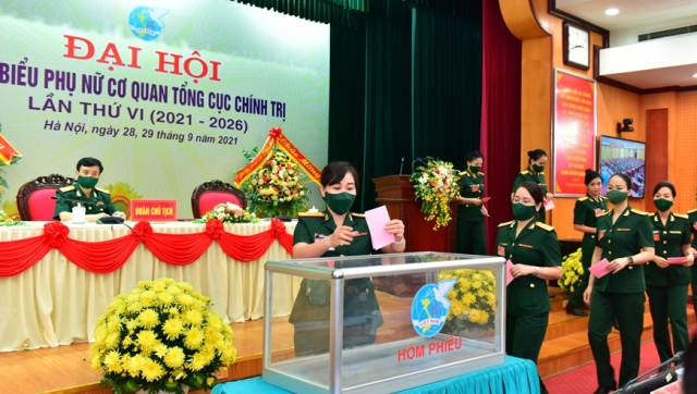 Bỏ phiếu bầu đoàn đại biểu dự Đại hội đại biểu Phụ nữ Quân đội lần thứ VII.