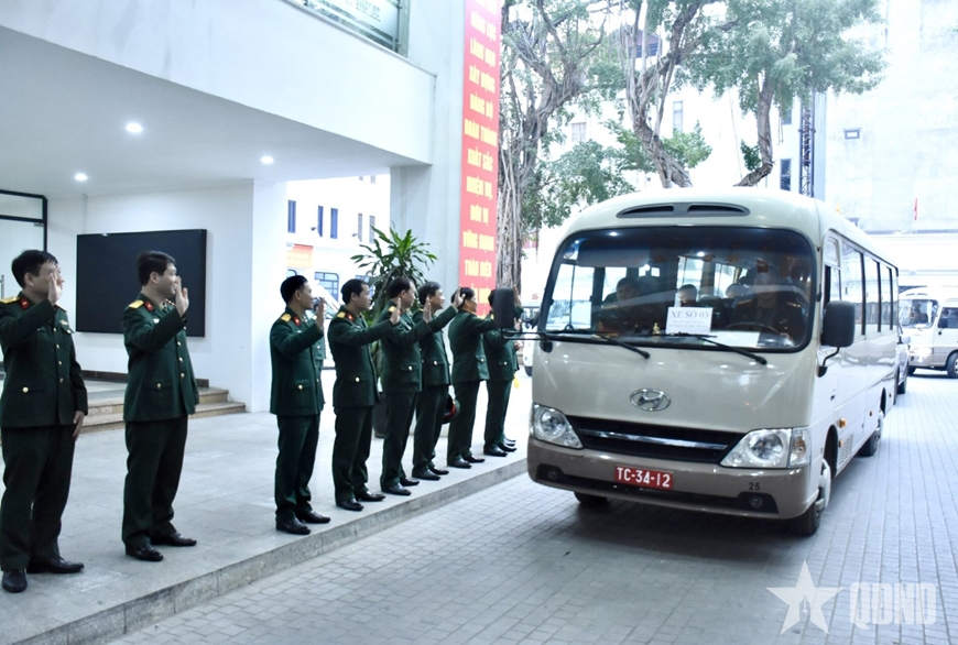 Thủ trưởng Cơ quan Tổng cục Chính trị tiễn quân nhân hoàn thành nghĩa vụ quân sự.