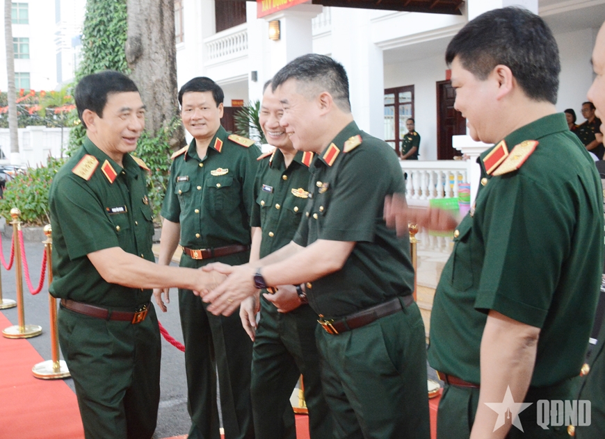 Đại tướng Phan Văn Giang, Ủy viên Bộ Chính trị, Phó bí thư Quân ủy Trung ương, Bộ trưởng Bộ Quốc phòng đến dự. Đại tướng Nguyễn Trọng Nghĩa, Ủy viên Bộ Chính trị, Bí thư Trung ương Đảng, Ủy viên Thường vụ Quân ủy Trung ương, Chủ nhiệm TCCT chủ trì buổi gặp mặt.