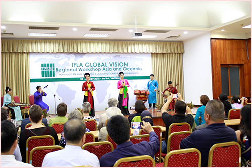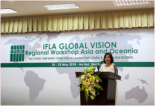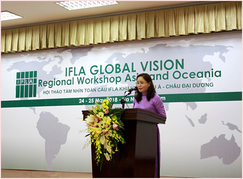 Được sự tiến cử của Ban Lãnh đạo IFLA; sự ủng hộ của Lãnh đạo Bộ Văn hoá, Thể thao và Du lịch Việt Nam, sáng 24/5/2018, Thư viện Quốc gia Việt Nam phối hợp với Liên đoàn quốc tế các Hội và cơ quan thư viện thế giới khai mạc Hội thảo Tầm nhìn toàn cầu của IFLA cho Khu vực Châu Á - Châu Đại dương.
