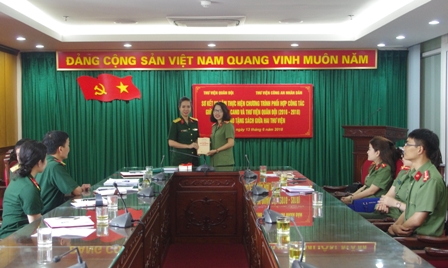 Thực hiện Chương trình phối hợp công tác giữa Thư viện Quân đội với Thư viện CAND đã được ký kết ngày 6/12/2016.