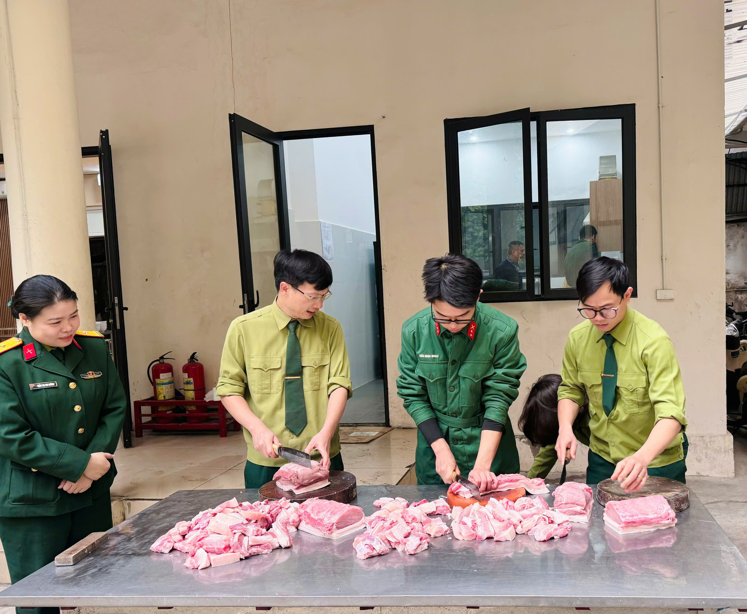 Ngay từ sáng sớm, khuôn viên Thư viện Quân đội đã trở nên nhộn nhịp. Cán bộ, nhân viên, chiến sĩ cùng nhau chuẩn bị các công đoạn gói bánh như vo gạo, đãi đỗ, ướp thịt, lau lá dong, chẻ lạt… Mỗi người một việc, phối hợp nhịp nhàng, thể hiện tinh thần đoàn kết, gắn bó trong đơn vị.