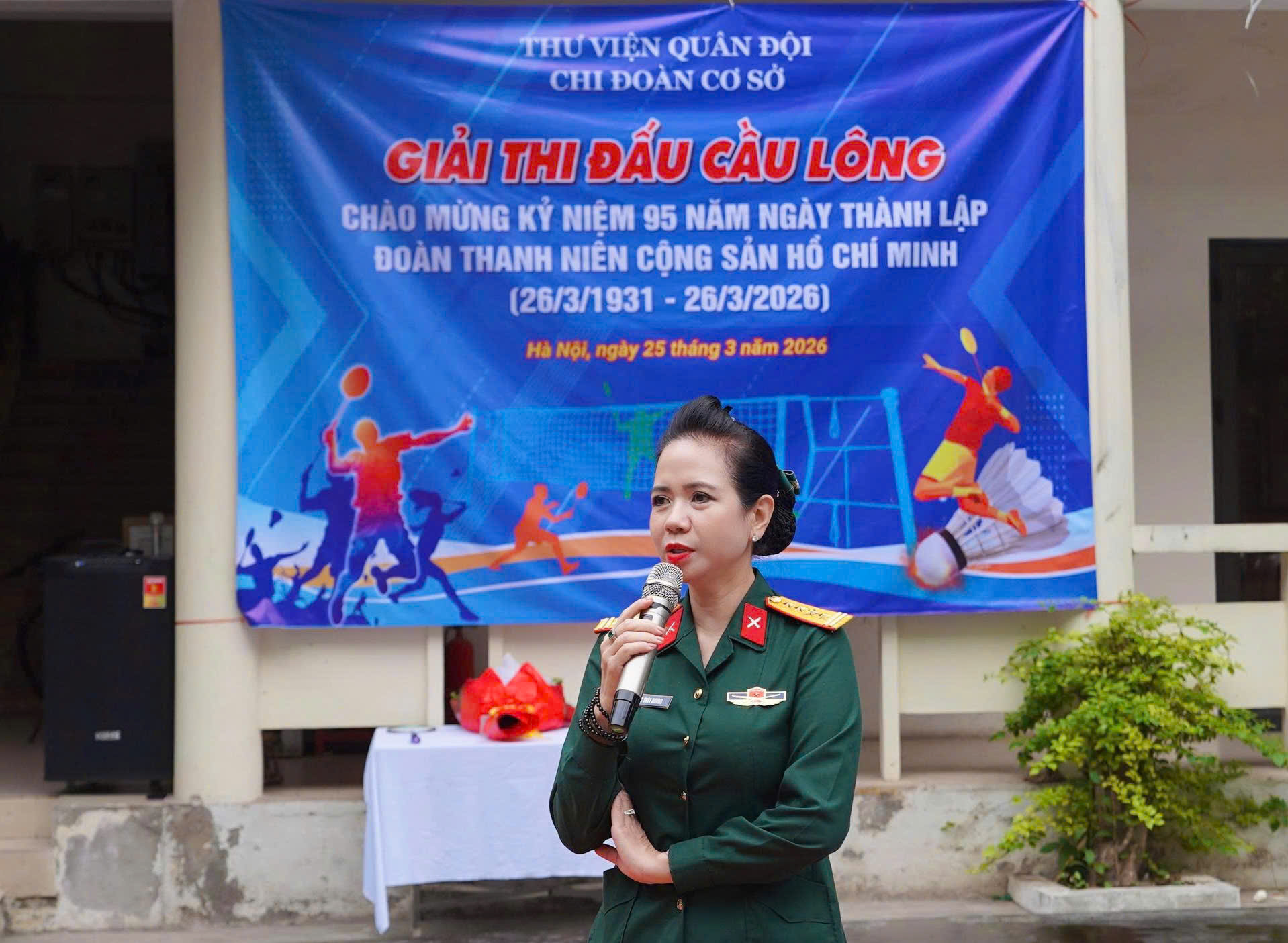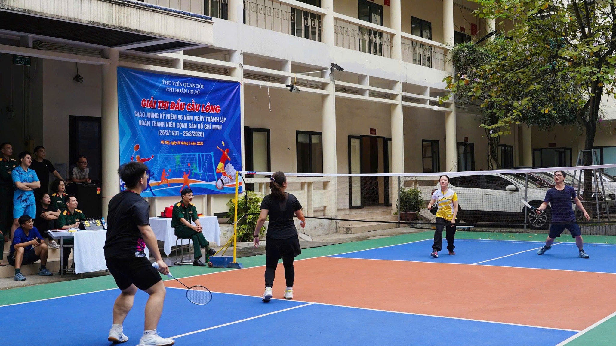 Sáng 25-3, Chi đoàn cơ sở Thư viện Quân đội tổ chức giải cầu lông chào mừng kỷ niệm 95 năm Ngày thành lập Đoàn TNCS Hồ Chí Minh (26/3/1931 – 26/3/2026). Đây là hoạt động ý nghĩa, thiết thực nhằm tạo không khí thi đua sôi nổi trong tuổi trẻ đơn vị, hướng tới ngày truyền thống vẻ vang của Đoàn.