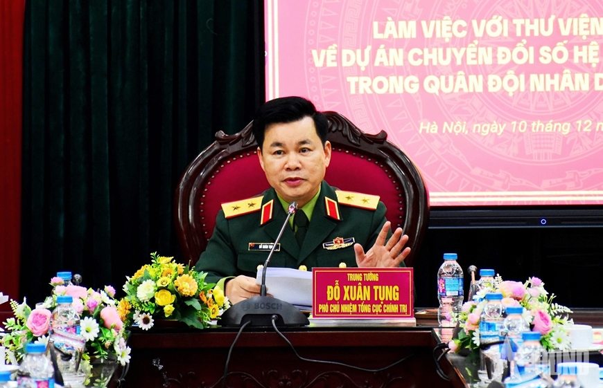Ngày 10-12, Trung tướng Đỗ Xuân Tụng, Phó chủ nhiệm Tổng cục Chính trị (TCCT) chủ trì làm việc với Thư viện Quân đội về Dự án Chuyển đổi số hệ thống thư viện trong Quân đội nhân dân Việt Nam.