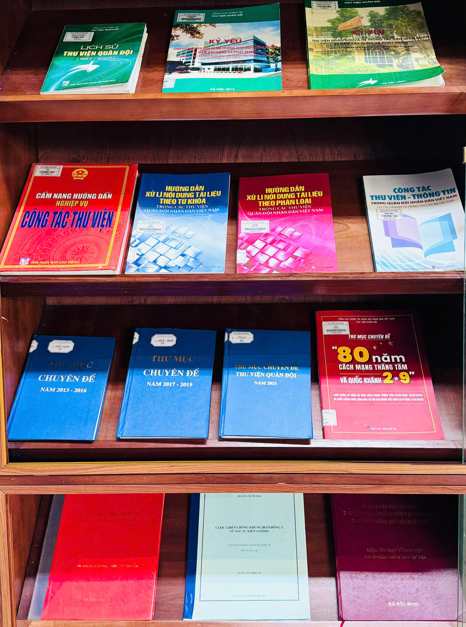 Một điểm nhấn đặc biệt của trưng bày là các công trình nghiên cứu, sáng kiến và đóng góp của các thế hệ cán bộ, lãnh đạo, nguyên lãnh đạo cùng đội ngũ nhân viên Thư viện. Những tài liệu này không chỉ mang giá trị lịch sử mà còn là nguồn tư liệu quý báu cho công tác nghiên cứu, giảng dạy, học tập và tham khảo của cán bộ, chiến sĩ toàn quân.