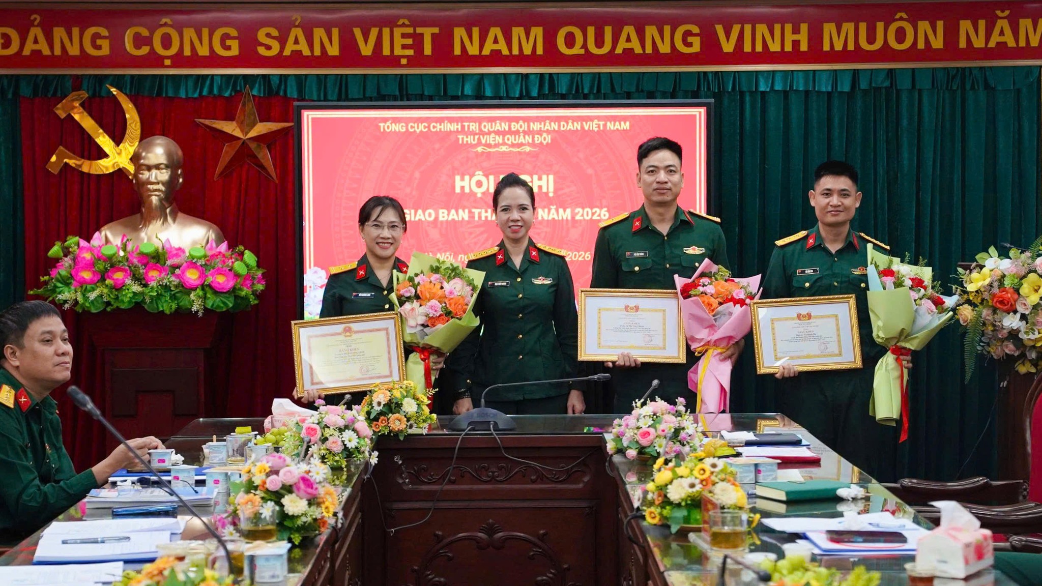 Nhân dịp này, Thư viện Quân đội đã trao bằng khen, giấy khen của Chủ nhiệm Tổng cục Chính trị cho các tập thể, cá nhân có thành tích xuất sắc trong Đợt thi đua cao điểm chào mừng kỷ niệm 80 năm Ngày Tổng tuyển cử đầu tiên bầu Quốc hội Việt Nam (6-1-1946 / 6-1-2026). Đồng thời, tặng giấy khen của Giám đốc Thư viện Quân đội cho các cá nhân có thành tích tốt trong công tác bầu cử đại biểu Quốc hội khóa XVI và đại biểu Hội đồng nhân dân các cấp nhiệm kỳ 2026-2031.
