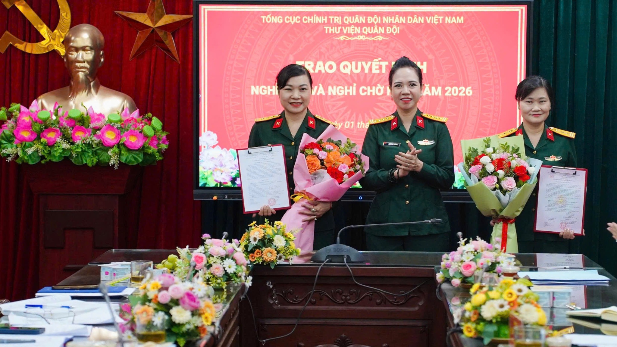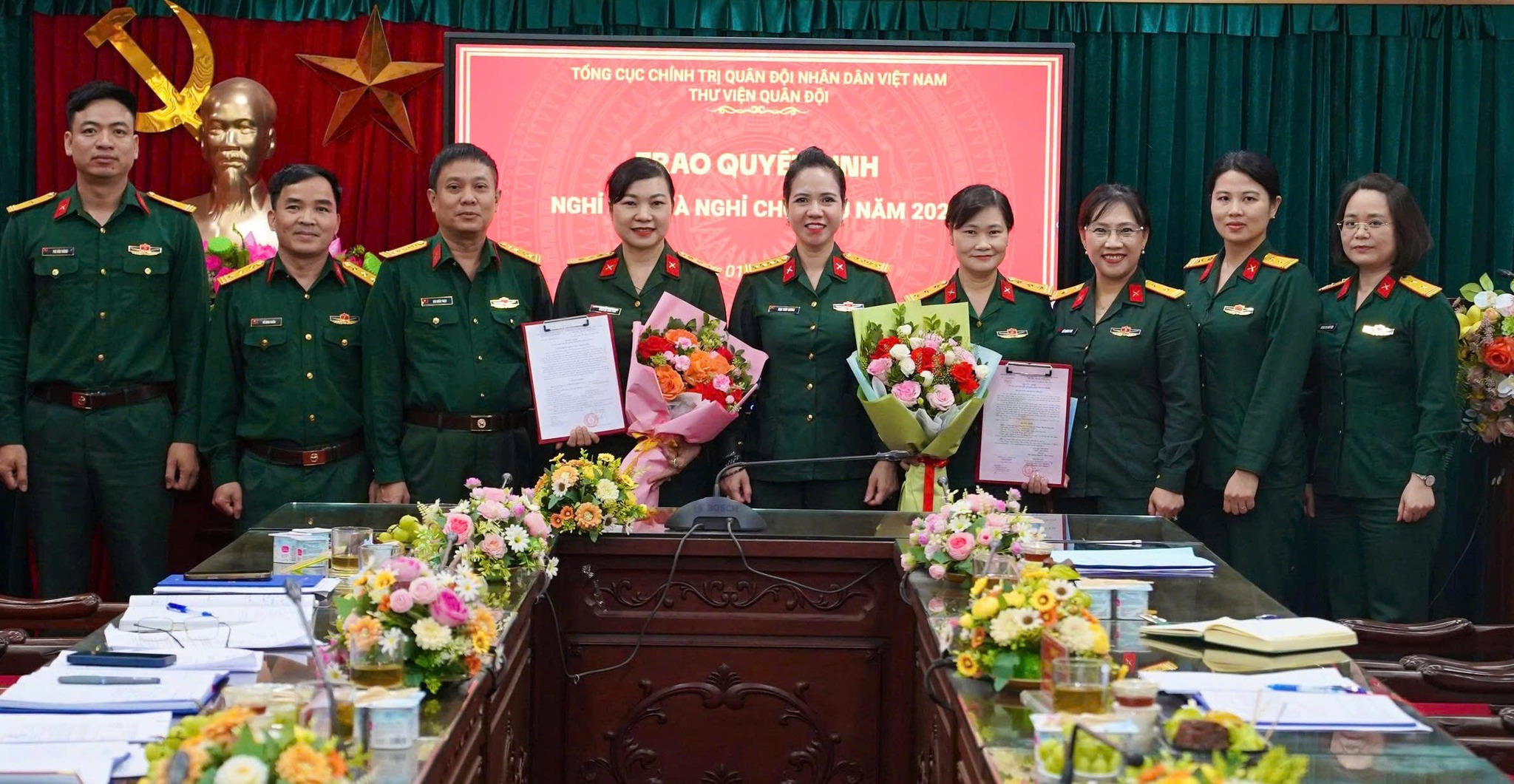 Cũng tại hội nghị, đơn vị đã công bố và trao quyết định nghỉ hưu theo chế độ đối với đồng chí Thượng tá Nguyễn Thúy Cúc, nguyên Trưởng phòng Phục vụ bạn đọc và đồng chí Thượng tá QNCN Phạm Thị Hoàng Yến, nhân viên Phòng Bổ sung, xử lý kỹ thuật. Phát biểu tại hội nghị, Đại tá Mạc Thùy Dương bày tỏ sự trân trọng, ghi nhận những đóng góp của các đồng chí trong suốt quá trình công tác; đồng thời chúc các đồng chí luôn mạnh khỏe, tiếp tục phát huy phẩm chất Bộ đội Cụ Hồ và giữ gìn mối liên hệ với đơn vị.