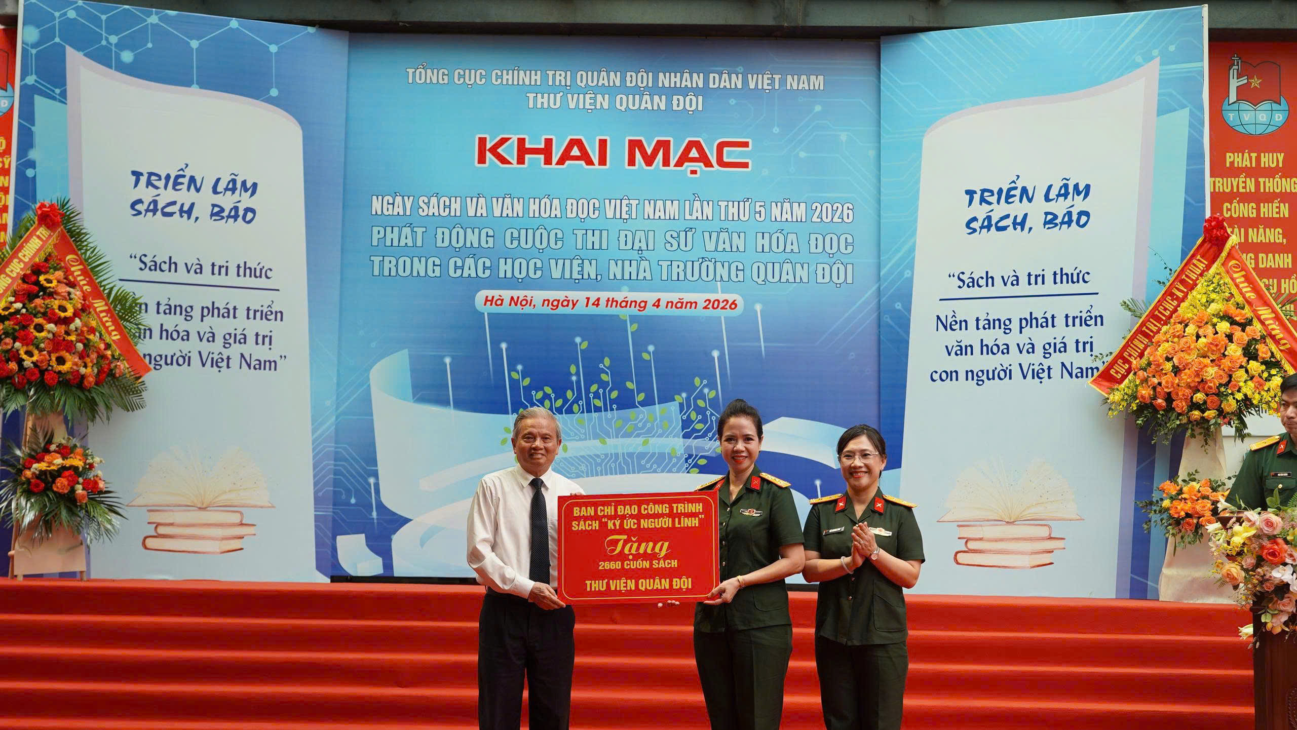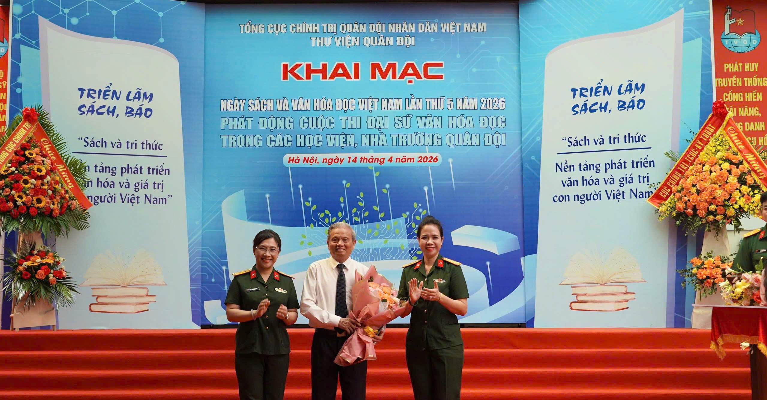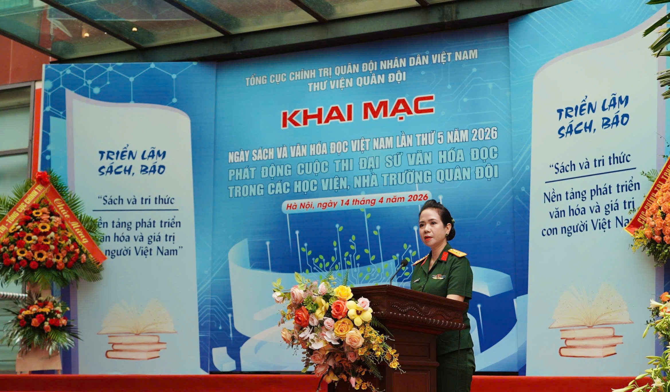 Sáng 14/4, tại Hà Nội, Thư viện Quân đội tổ chức khai mạc Ngày Sách và Văn hóa đọc Việt Nam lần thứ 5 trong Quân đội; đồng thời phát động Cuộc thi Đại sứ Văn hóa đọc năm 2026 và khai mạc triển lãm sách, báo với chủ đề “Sách và tri thức - Nền tảng phát triển văn hóa và giá trị con người Việt Nam”. Thượng tướng Trương Thiên Tô, Ủy viên Trung ương Đảng, Phó chủ nhiệm Tổng cục Chính trị đến dự và phát biểu chỉ đạo.