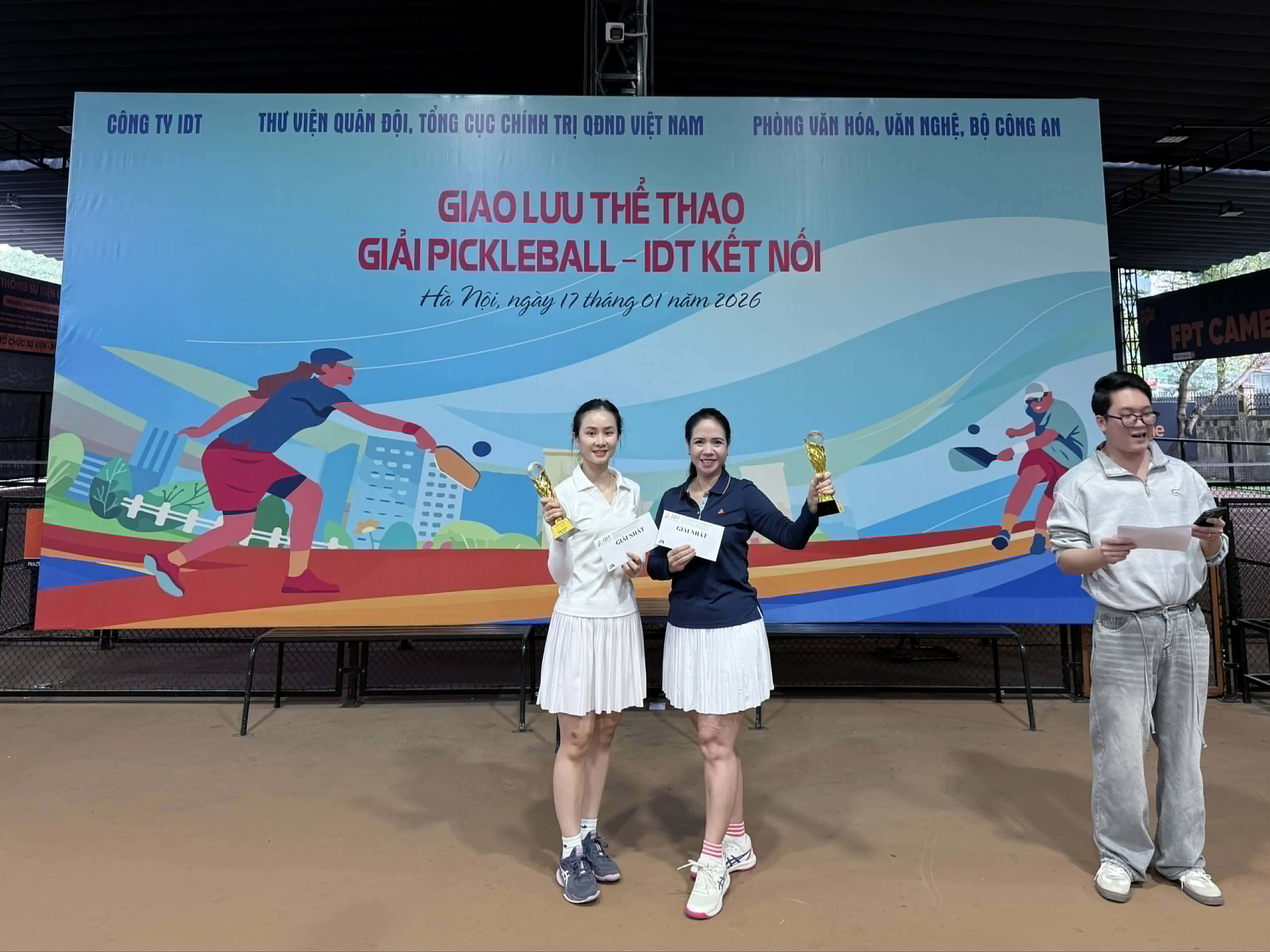Ngày 17/01, tại Trung tâm Huấn luyện thể thao Bộ Công An, Công ty IDT phối hợp với Thư viện Quân đội và Phòng Văn hóa Văn nghệ, Cục Công tác Chính trị, Bộ Công an tổ chức buổi giao lưu thể thao môn Pickleball trong không khí sôi nổi và đầy ý nghĩa. Đây là hoạt động thiết thực nhằm nâng cao sức khỏe, phát triển phong trào thể dục thể thao và tăng cường tinh thần đoàn kết.