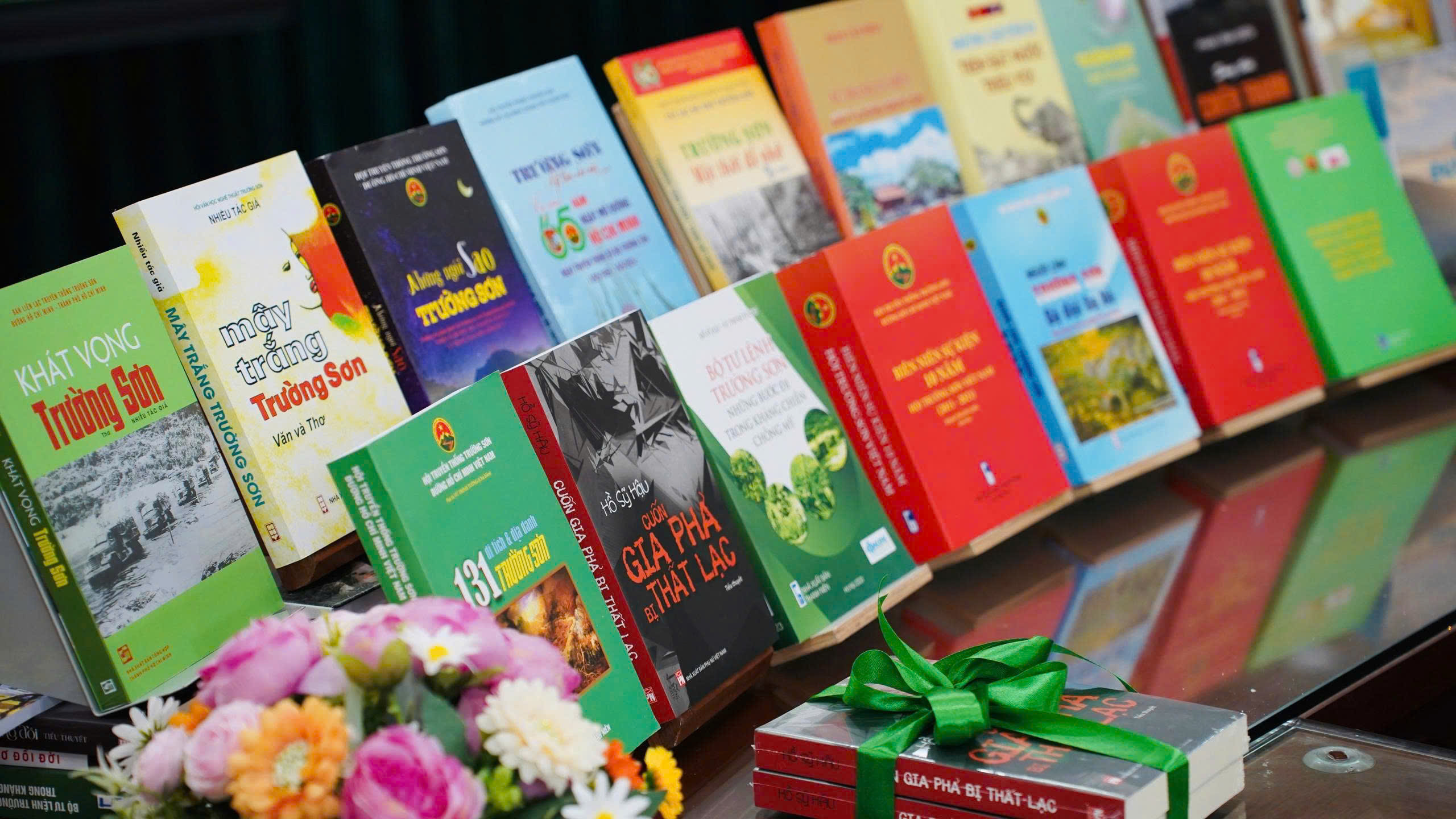 Các đầu sách được Hội Truyền thống Trường Sơn - Đường Hồ Chí Minh trao tặng Thư viện Quân đội.