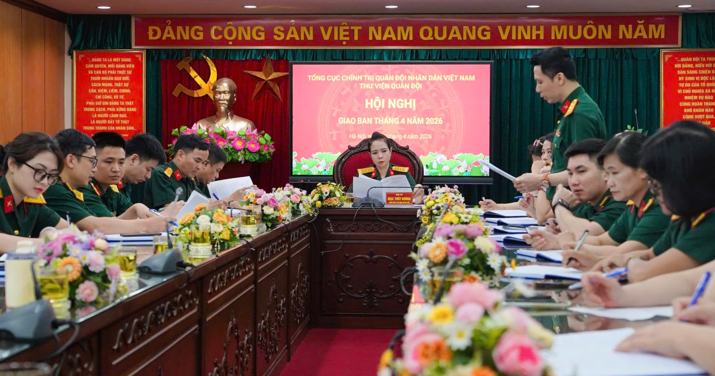 Trong không khí thi đua sôi nổi hướng tới các ngày lễ lớn của đất nước, ngày 29/4/2026, Thư viện Quân đội tổ chức hội nghị giao ban tháng 4 nhằm đánh giá kết quả thực hiện nhiệm vụ và triển khai phương hướng công tác tháng 5.