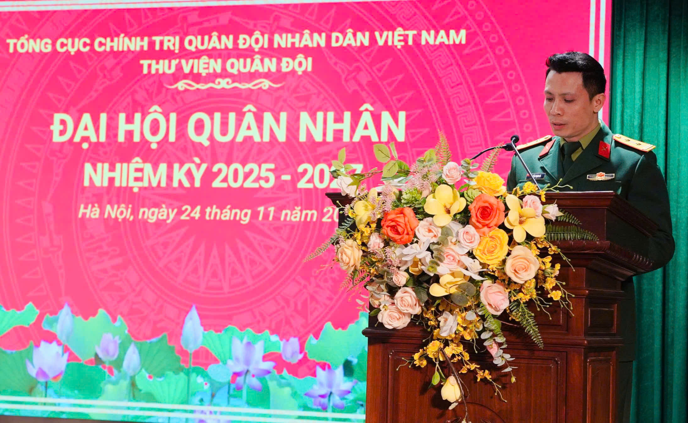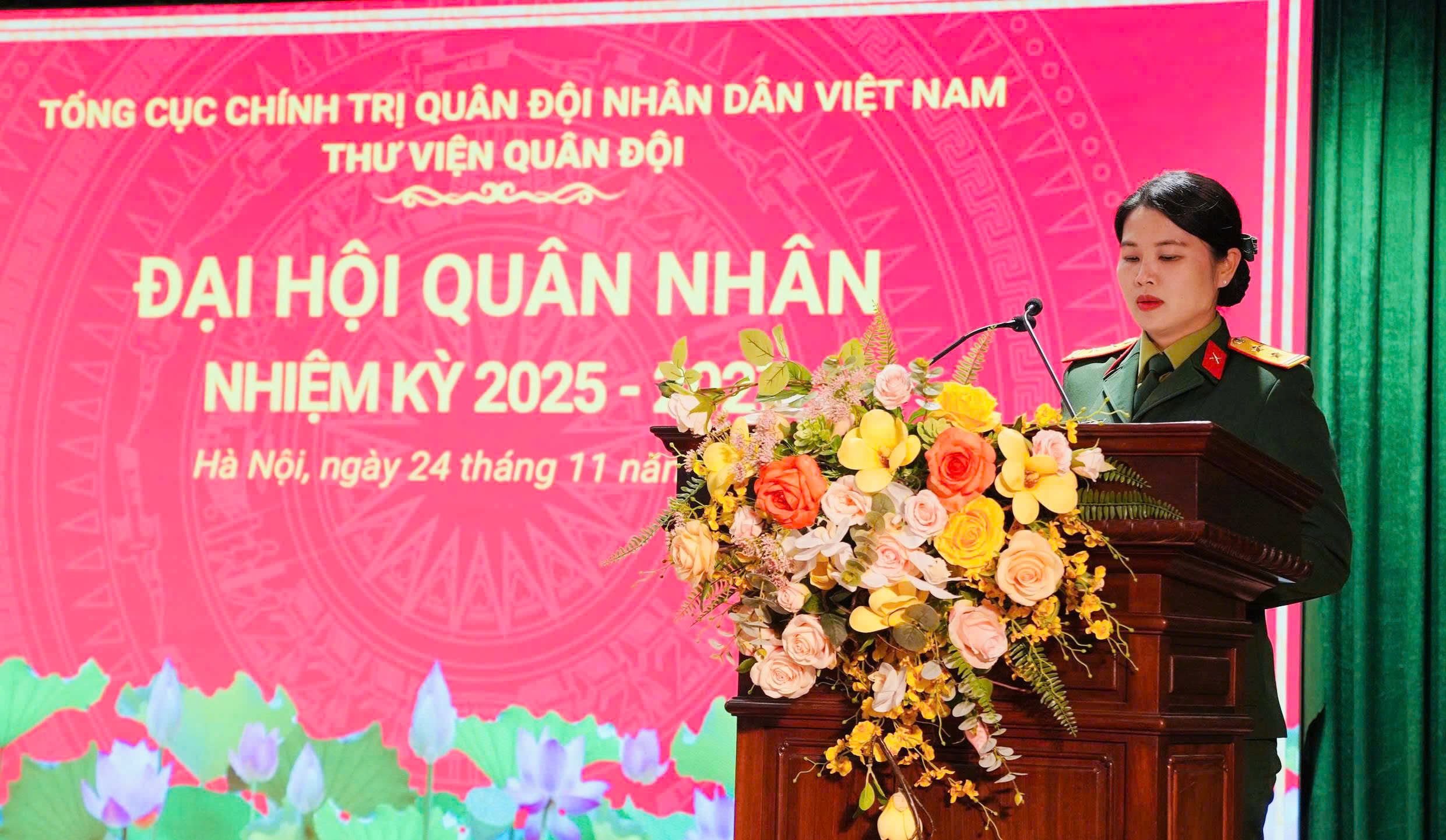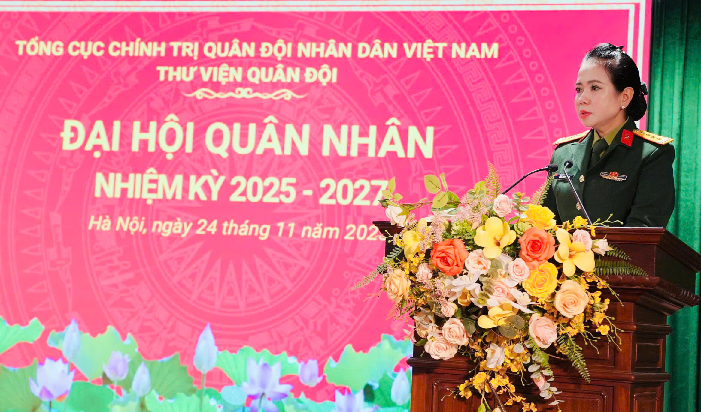 Ngày 24-11, tại Hà Nội, Thư viện Quân đội tổ chức Đại hội quân nhân nhiệm kỳ 2025-2027. Đại tá Mạc Thùy Dương, Bí thư Đảng ủy, Giám đốc Thư viện Quân đội dự, chỉ đạo đại hội.