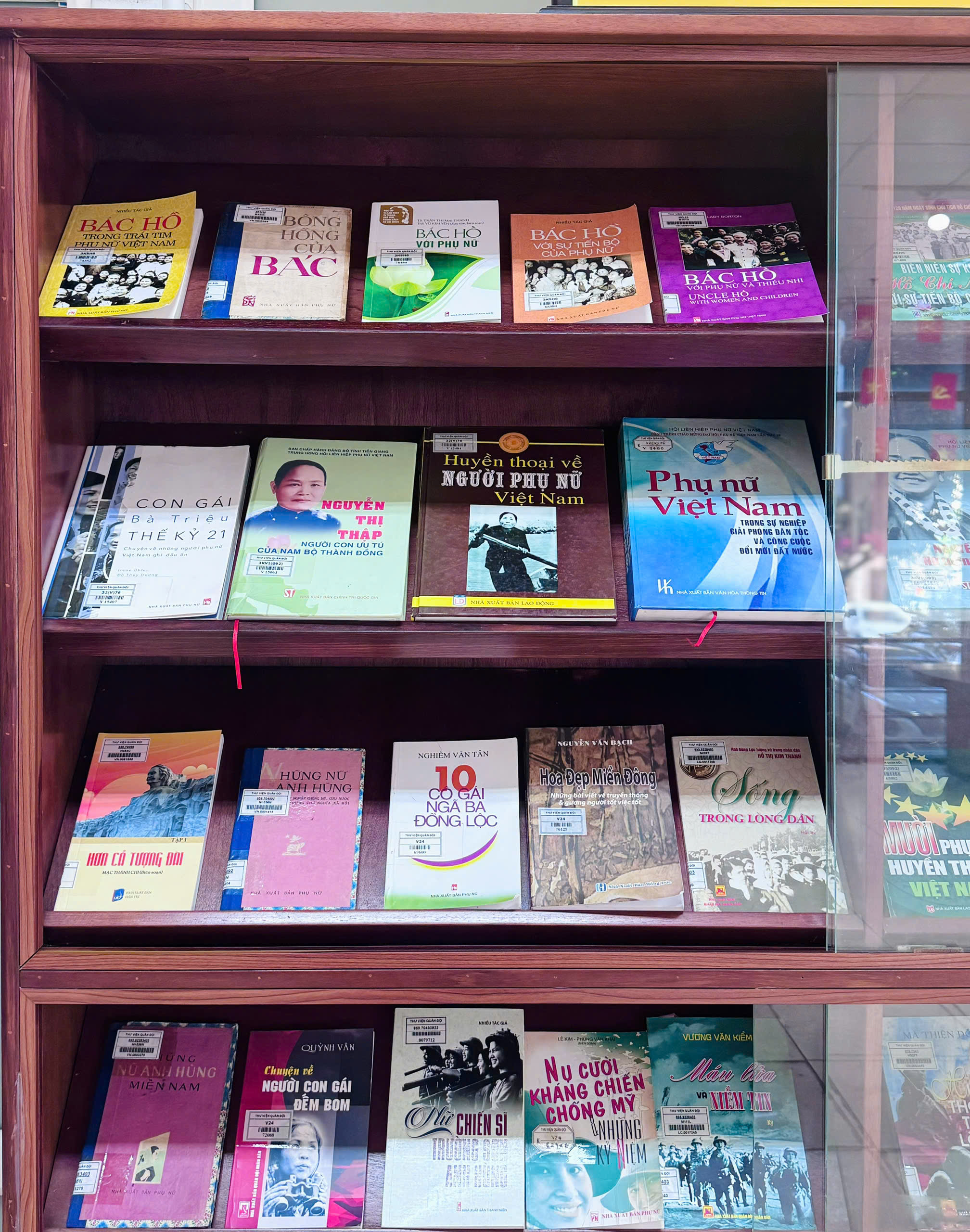 Với hơn 100 cuốn sách, báo và tư liệu tiêu biểu đã được Thư viện Quân đội lựa chọn sắp xếp, trưng bày theo bốn mảng nội dung chính: “Bác Hồ với công tác phụ nữ”, thể hiện sự quan tâm, chỉ dẫn sâu sắc của Chủ tịch Hồ Chí Minh đối với phong trào phụ nữ Việt Nam; “Phụ nữ Việt Nam anh hùng, bất khuất, trung hậu, đảm đang”, tái hiện truyền thống vẻ vang, phẩm chất cao quý của các thế hệ phụ nữ trong sự nghiệp đấu tranh giải phóng dân tộc và xây dựng đất nước; “Phụ nữ Quân đội - Ba đảm đang”, khắc họa hình ảnh người phụ nữ Quân đội vừa giỏi việc nước, đảm việc nhà, vừa nêu cao tinh thần trách nhiệm trong công tác, học tập và chiến đấu; “Phụ nữ với bình đẳng giới”, giới thiệu các văn kiện, tài liệu, chính sách nhằm thúc đẩy vai trò, vị thế của phụ nữ trong thời đại mới.