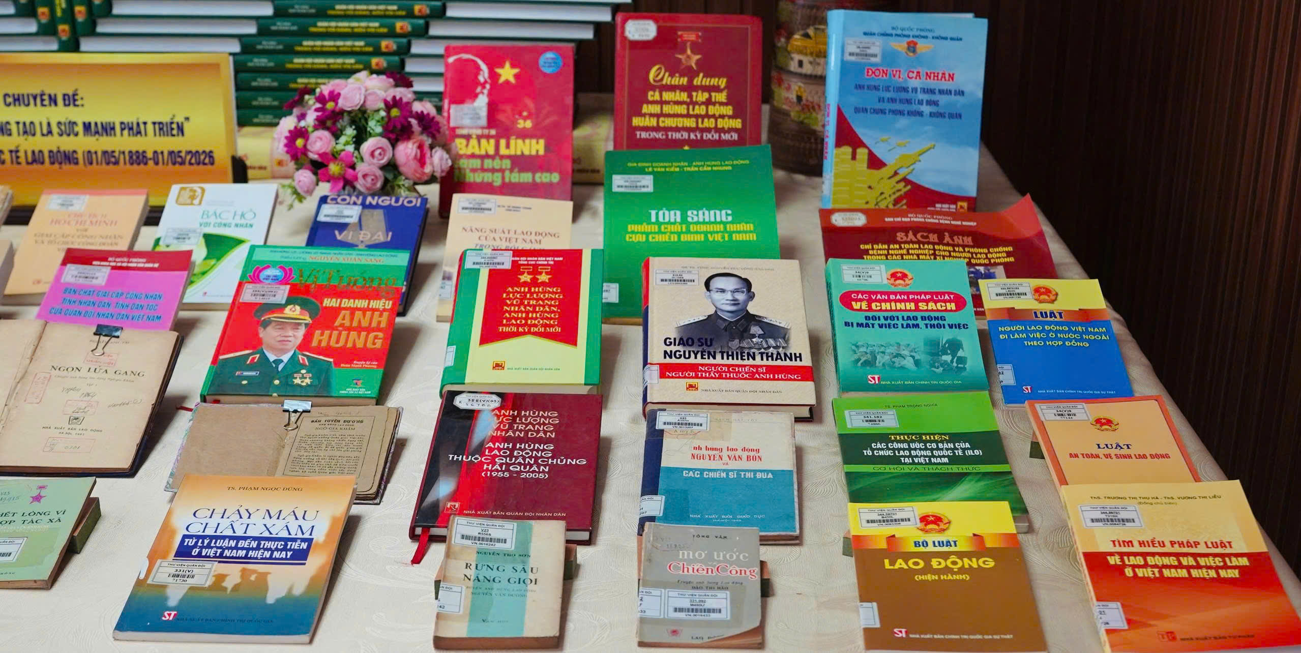 Trưng bày sách, báo, tài liệu với chủ đề “Lao động là vinh quang - sáng tạo là sức mạnh phát triển” của TVQĐ.