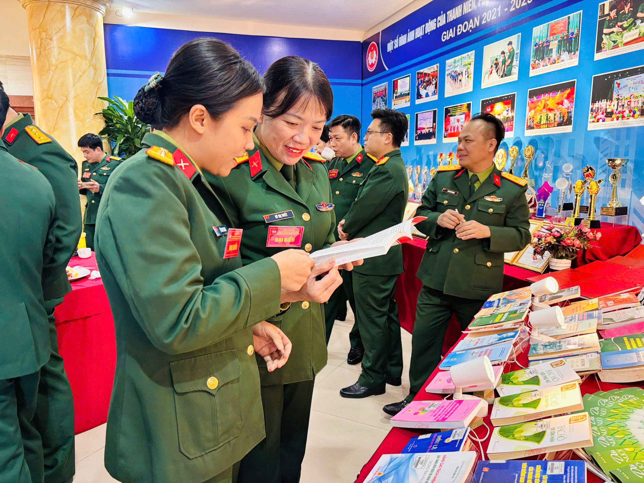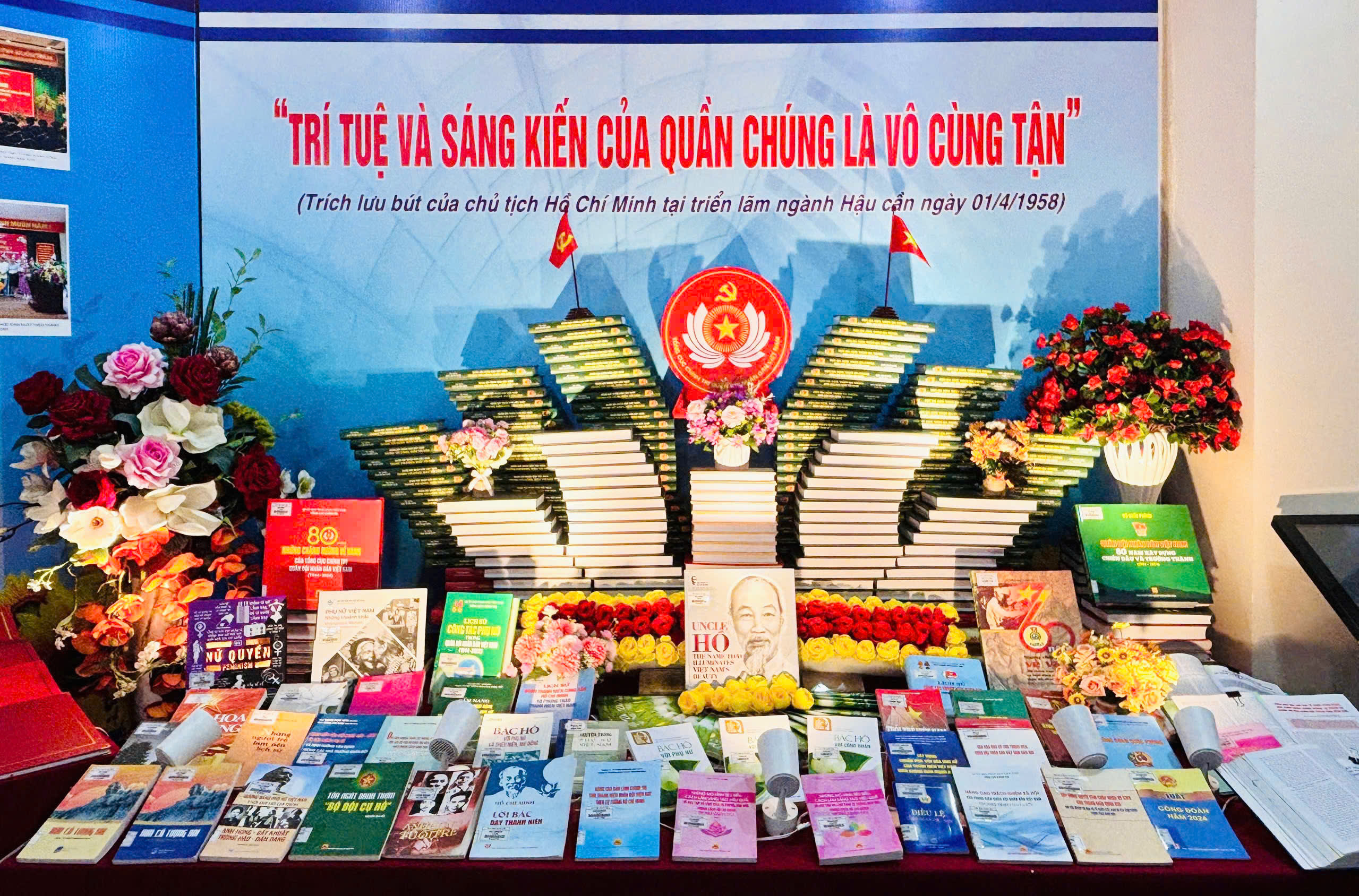 Trưng bày sách với chủ đề “Trí tuệ và sáng kiến của quần chúng là vô tận” của TVQĐ tại hội nghị.